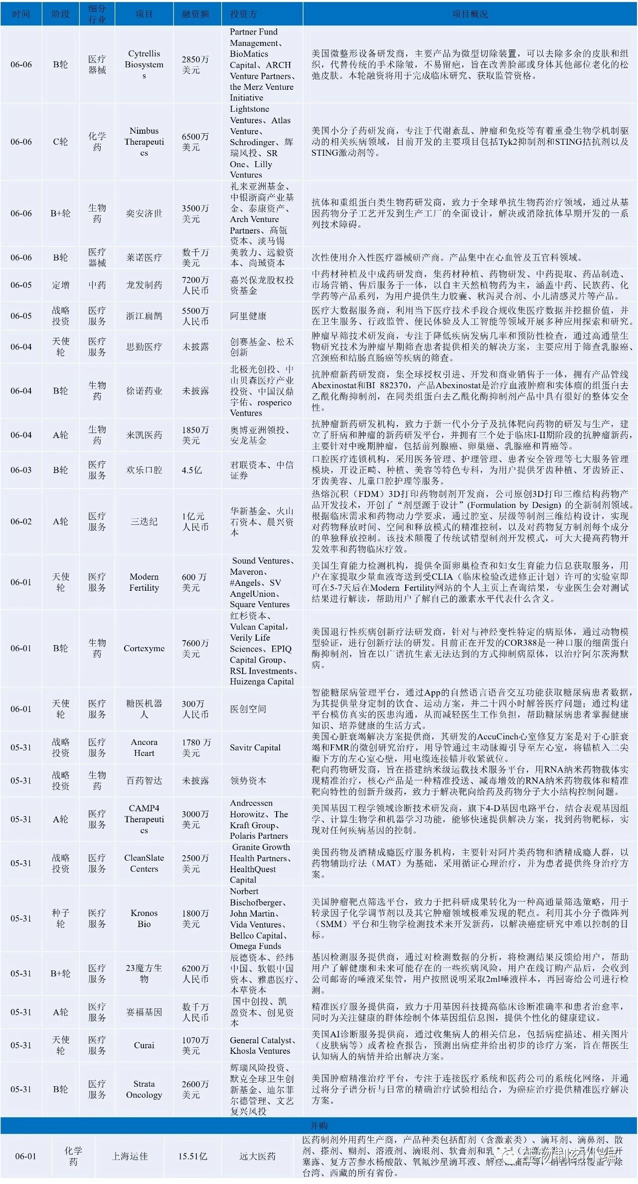 医疗行业投融资周报20180531-20180607